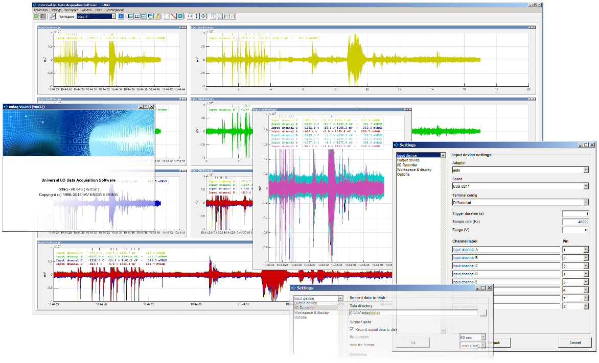 Originally developed for our own acoustics and vibration signal processing need, we now open iodaq to free access so that user’s can benefit their DAQ hardware’s without programming or using more extended software’s. New and missing functions are introduced regularly according to our possibilities. iodaq is developed by IAV Engineering SARL and iodaq® is a trademark IAV Engineering SARL.